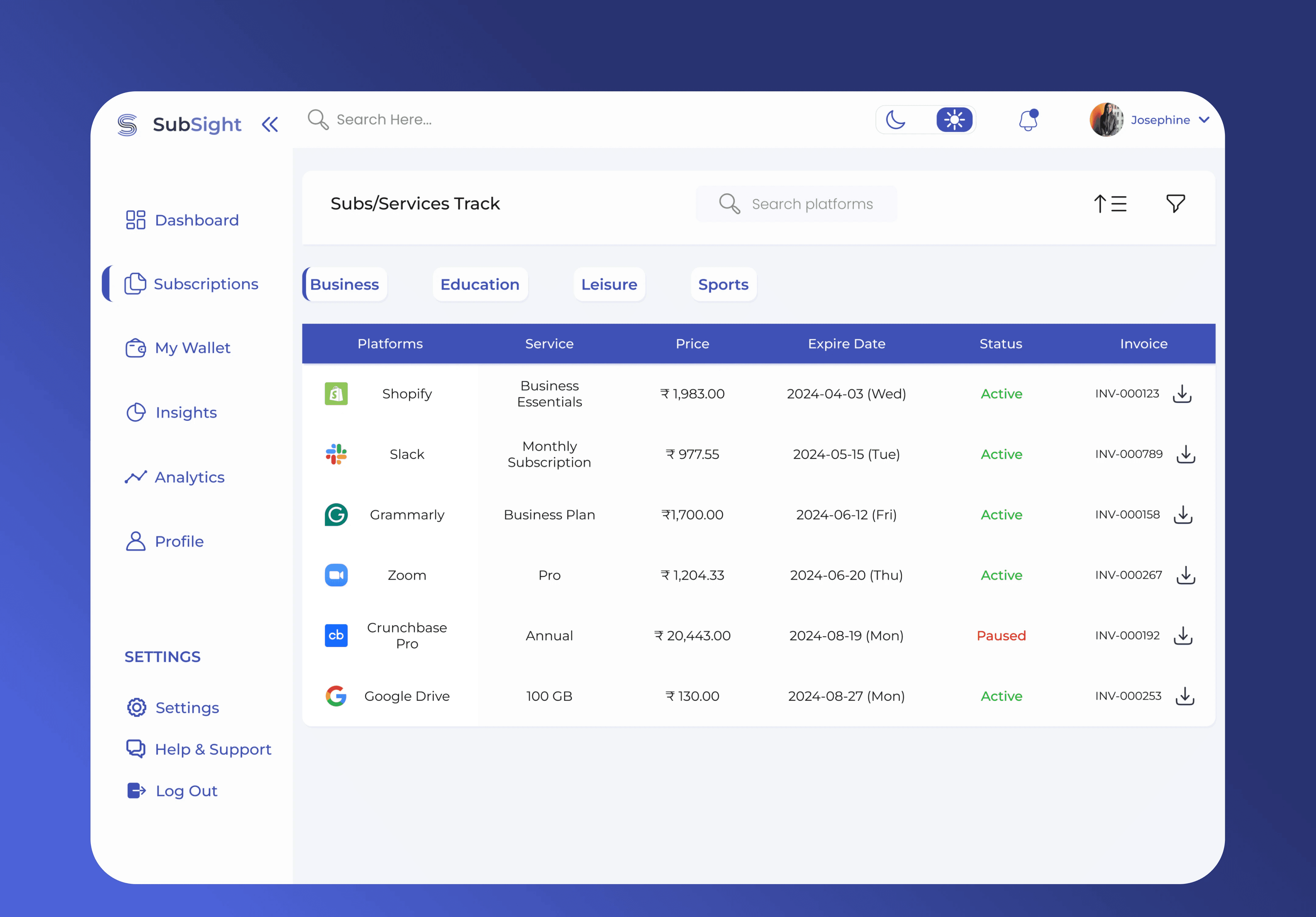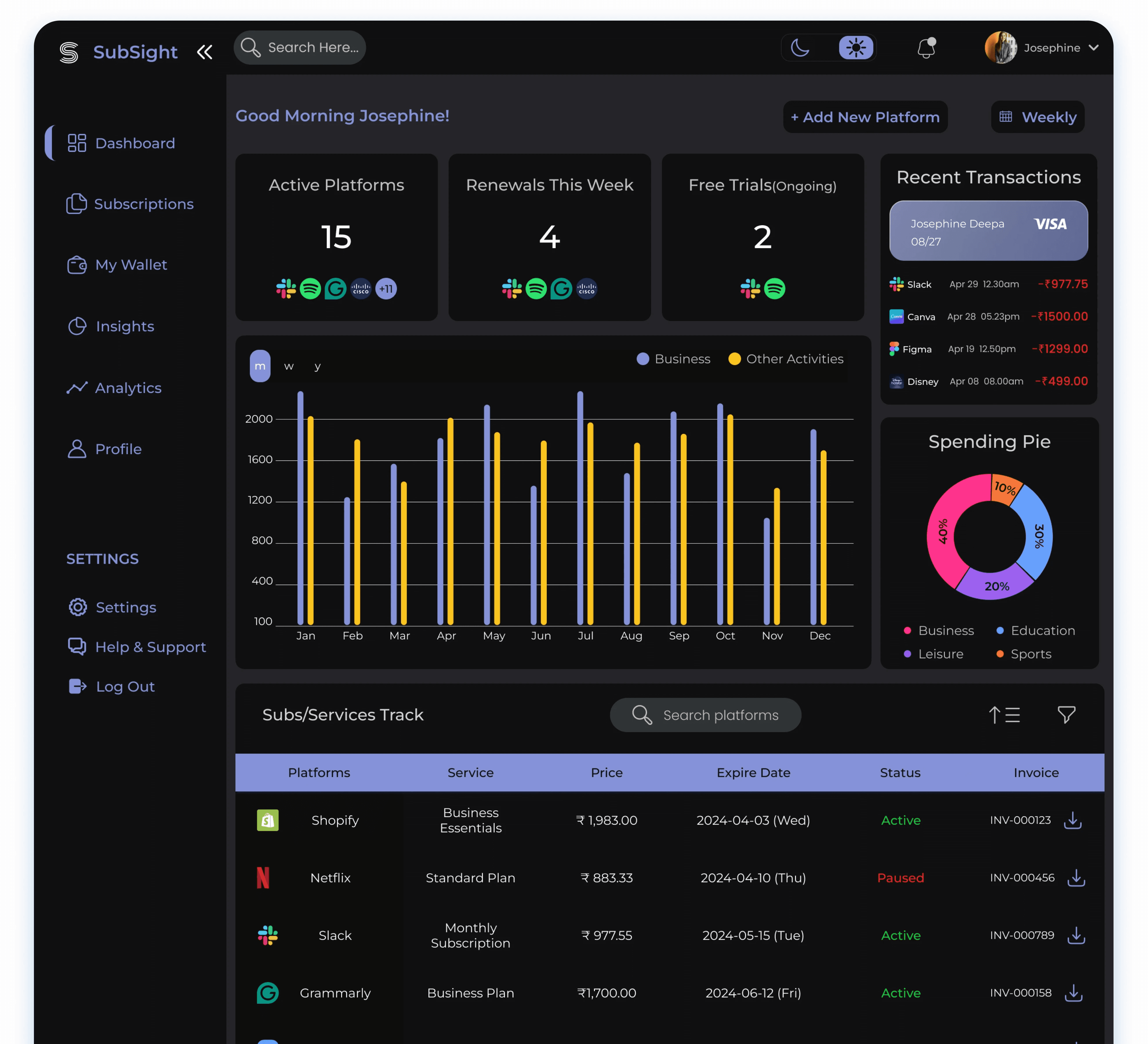 Meet SubSight, your best friend for taking control of those pesky subscriptions and putting them all in one easy place. My mission? To create a super user-friendly platform that lets you manage your subscriptions with no sweat, track how much you're spending, and never miss a renewal date again!